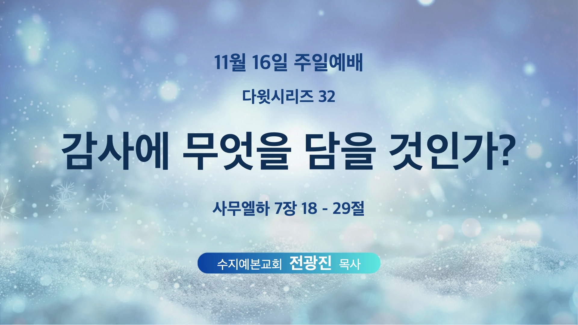 오늘은 추수감사주일 예배로 드립니다.※ 특별헌금은 헌금함에 직접 넣어 주시고, 온라인 헌금